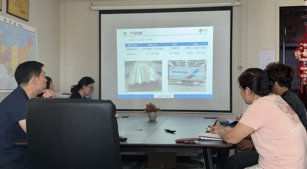 This afternoon, technicians from Liangang came to our company to explain cold-rolled high-strength car plate, which is mainly used in van bodies, truck side panels, and containers. They also explained Liangang’s cold-rolled automotive steel and Liangang’s hot-formed steel.