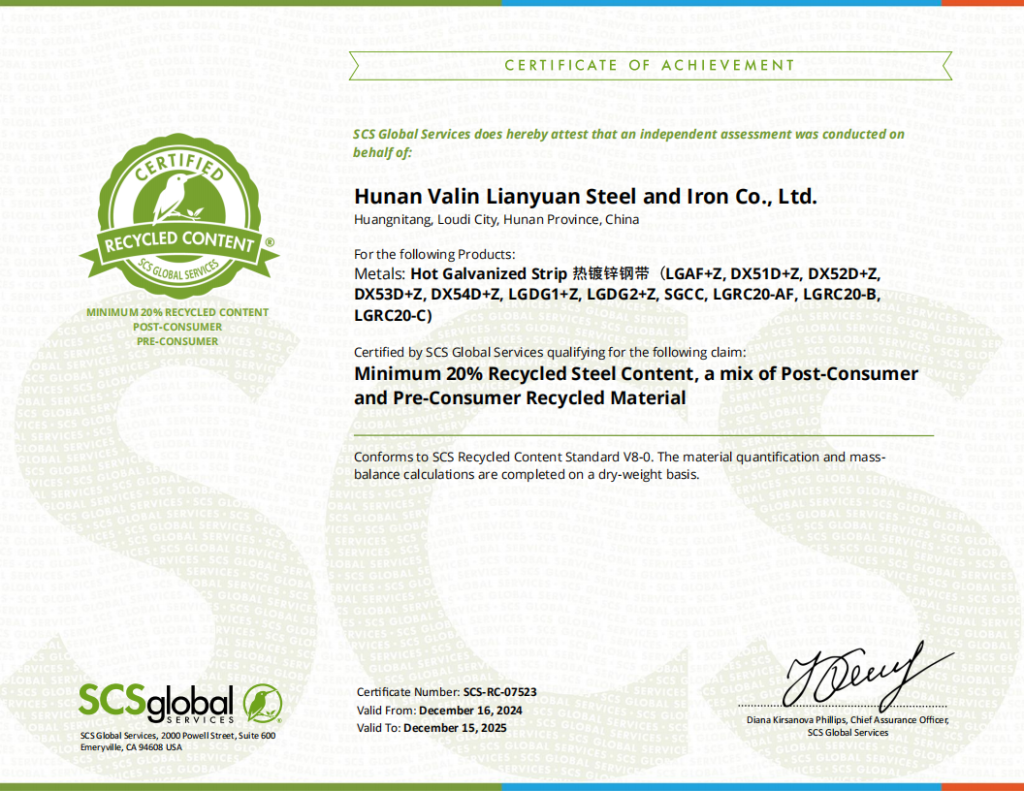 Liangang’s galvanized chromium-free, fingerprint-resistant green steel meets the needs of high-end electronic 3C products with its excellent surface quality, processing and forming performance, baking paint performance, lubrication performance and lower surface resistance. Among them, the RC20 product was the first to pass the strict SCS system certification in 2023, and has become a business card of Liangang’s galvanized green steel products.